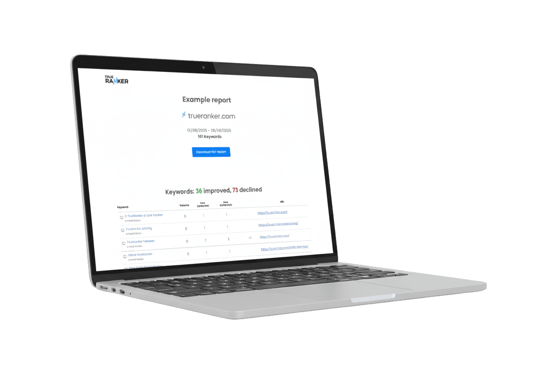 TrueRanker is a specialized SEO tool focused on providing the most accurate and easy-to-understand keyword rank tracking on the market. We help you monitor your Google rankings, analyze competitors, and find opportunities to grow your organic traffic.