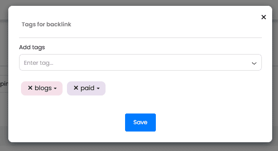 You can assign Tags to any backlink in your list. Just click on the tag icon next to the link.