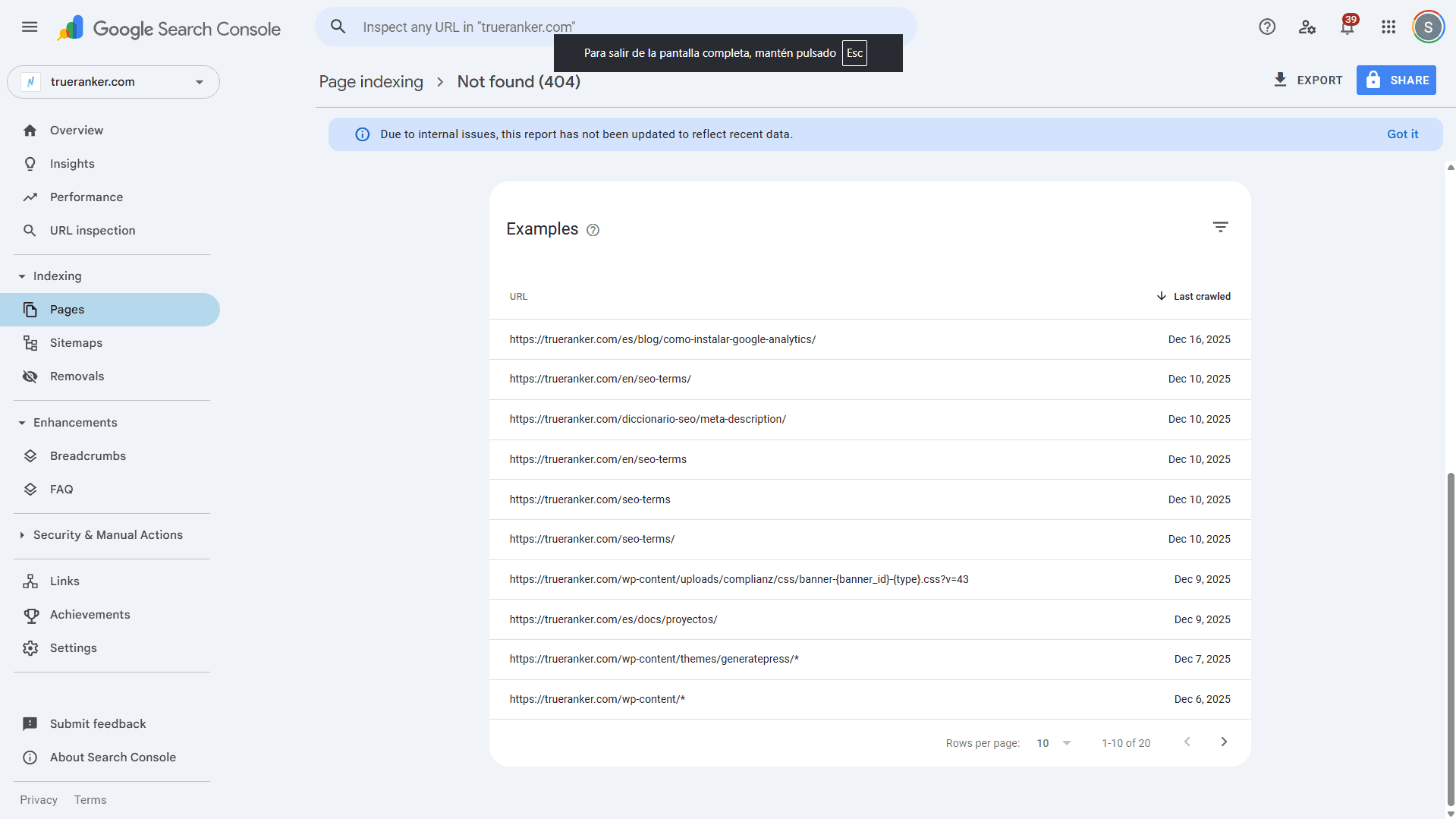 Si ves fluctuaciones extrañas en tus gráficas de TrueRanker, antes de entrar en pánico por una actualización de Google, haz un chequeo de errores 404. A menudo, la solución es más simple de lo que crees.