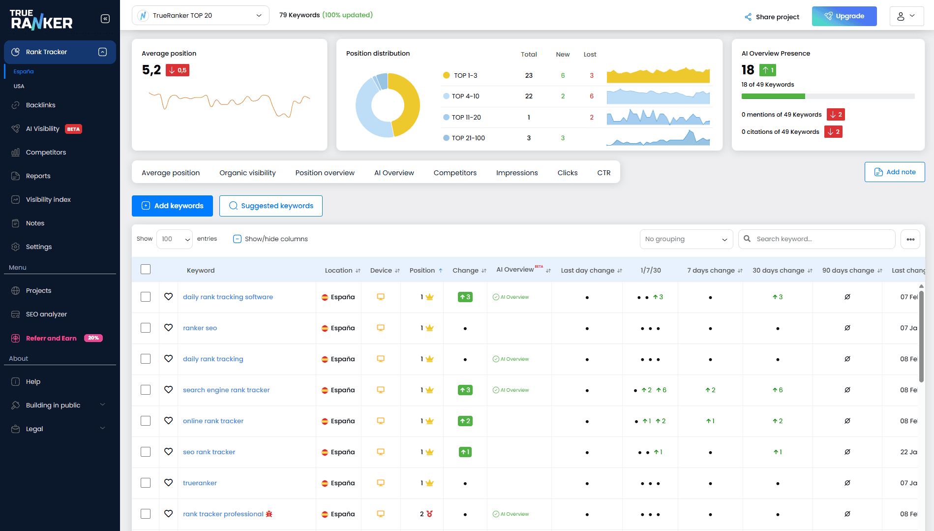 Comprueba tus posiciones en Google y tu visibilidad en IA ahora mismo.