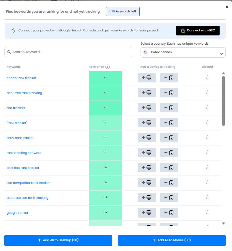 Yes. Modern SEO requires granular tracking. When you find a suggestion, you can choose to add it to Desktop, Mobile, or Both. This is crucial because a keyword might have high volume on mobile but low volume on desktop.